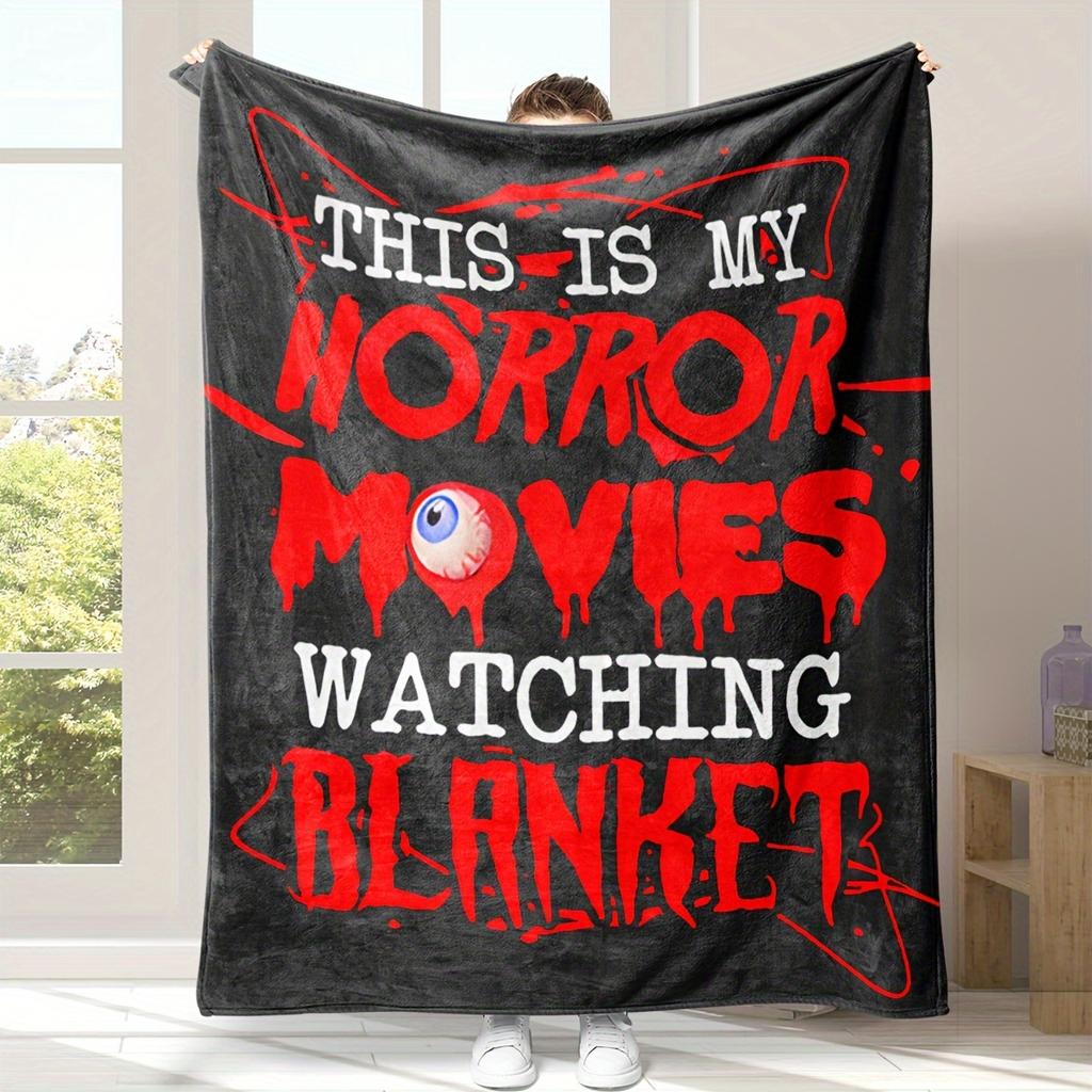 Halloween Horror Movie Blanket Black Red Eyeball Print Soft Plush Spooky Design Home Decor Sofa Couch Movie Night Watching Gift
