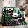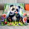 1pc Giant Panda Mother & Cub Print Flannel Blanket - Heavyweight Soft Plush All-Season Luxury Bedspread, Machine Wash