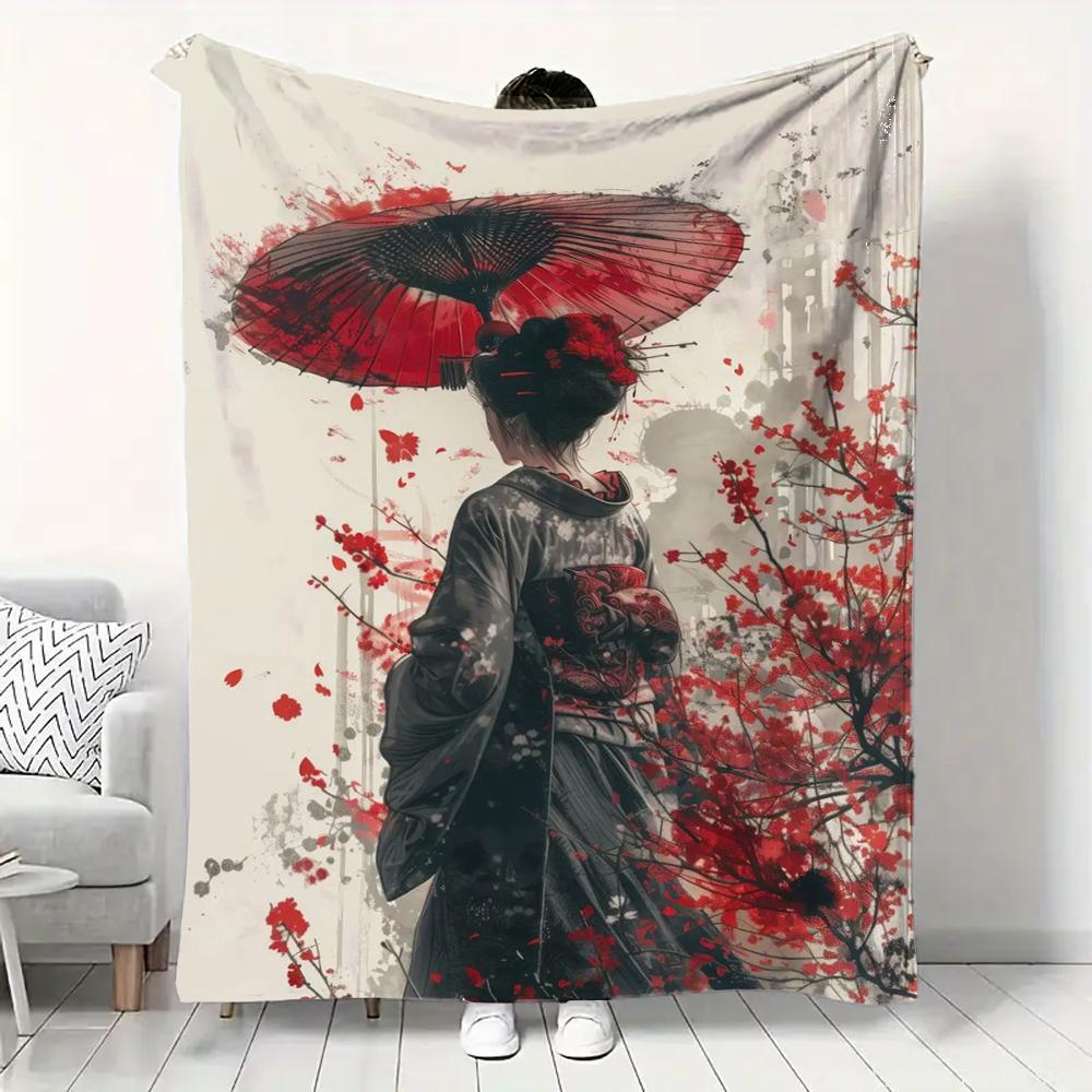 Japanese Landscape Samurai Geisha Flannel Fluffy Throw Camping Blanket for Children Adult Sofa Throw Blanket Modern Fashion Gift