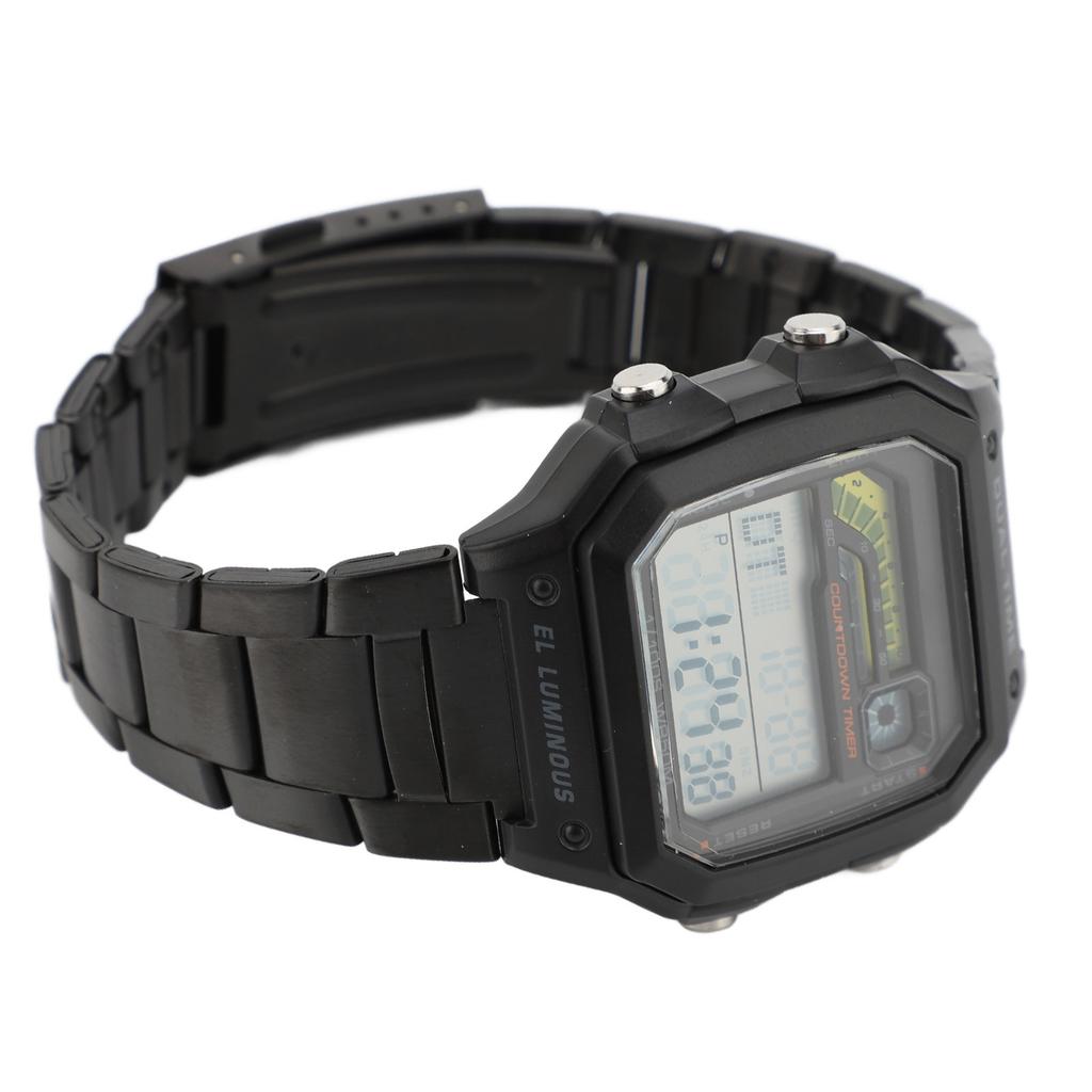 Dijital Spor Saati Dış Mekan Paslanmaz Çelik Kayış LED Arka Aydınlatma Dijital Ekran Elektronik Saat Parlayan Erkek Dış Mekan