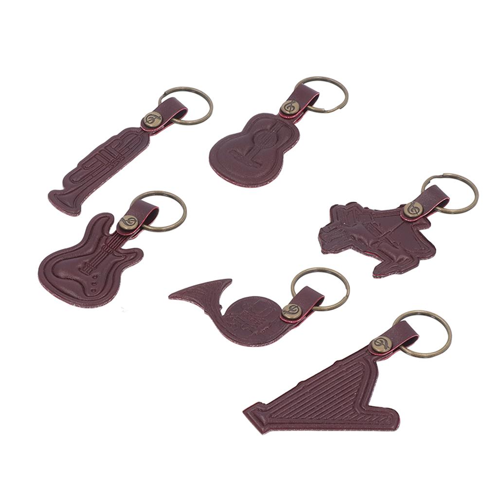 7PCS Cowhide Musical Instrument Keychains Mini Guitar Violin Horn Bass Piano Harp Keyring Set