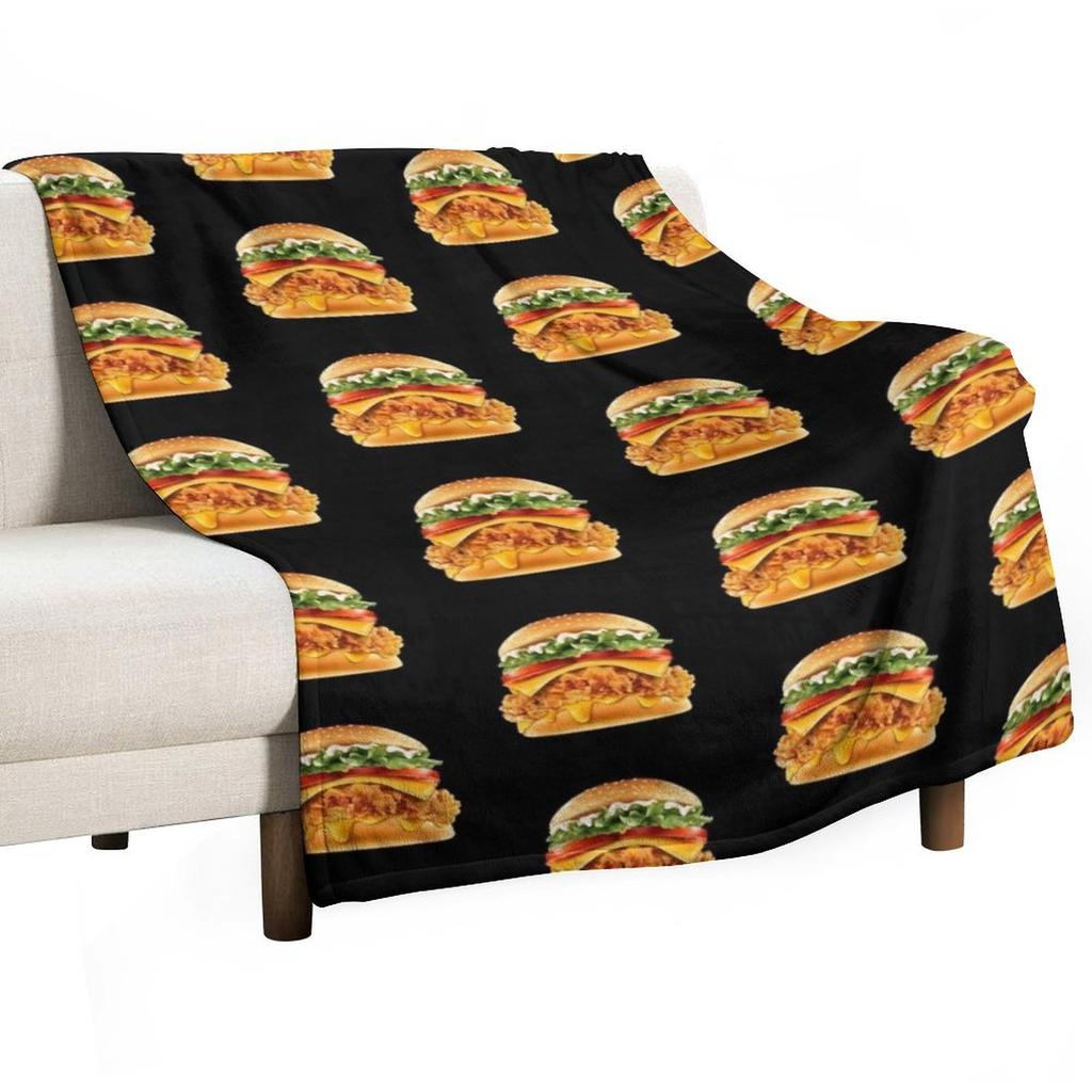 Crispy Chicken Burger With Melted Cheese Throw Blanket Flannel Fabric Loose Summer Tourist Blankets