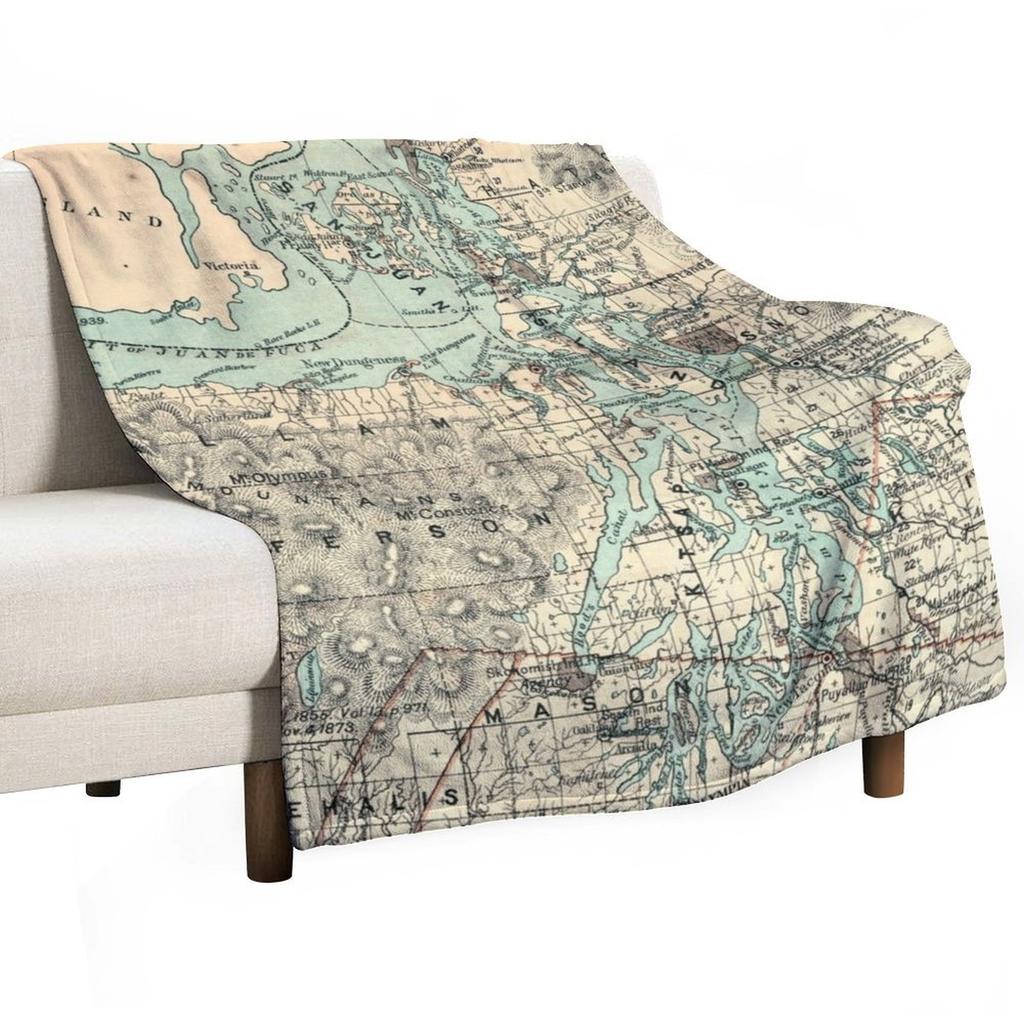 Vintage Map of The Puget Sound (1883) Throw Blanket For Decorative Sofa Camping Polar Bed Blankets