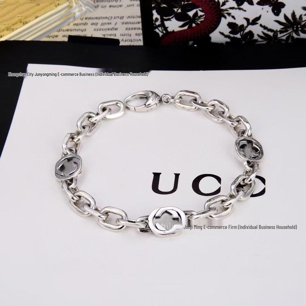 Vintage White Gold Double G Interlocking Bracelet - Women’s Fashionable Cuban Chain Bangle