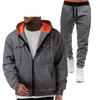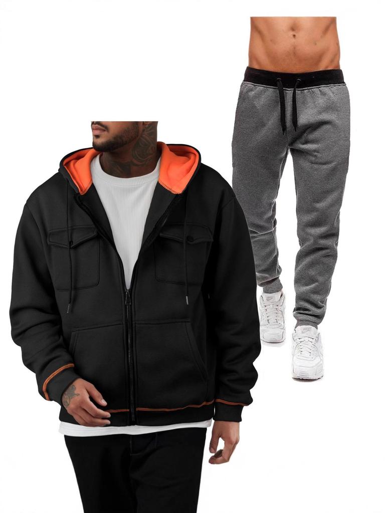This stylish hoodie and sweatshirt set is perfect for a sporty yet casual look. Crafted from high-quality polyester, it offers both comfort and durability. The zip-up design is complemented by a unique v-neckline, providing a contemporary twist to a classic piece. With practical double pockets, this set is ideal for carrying small essentials or keeping hands warm. Enjoy the blend of functionality and fashion in this versatile wardrobe staple.