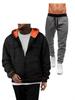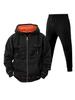 Discover comfort and style with this men's hooded sweatshirt set, perfect for both sports and casual wear. The zip-up fleece-lined jacket is designed with a V-neckline and features double pockets for added convenience. Made entirely of polyester, it promises warmth and durability while maintaining a sleek and modern look. Ideal for layering in colder weather or as a standalone piece for a sporty casual appearance.