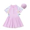 This charming one-piece skirted swimsuit for girls features a lovely rouge pink color, perfect for little princesses who love to swim. Designed with quick-dry technology, it ensures comfort both in and out of the water. Made from durable polyester, this swimsuit provides excellent sun protection, making it ideal for long days at the beach or pool. Available in medium and large sizes, it combines style and functionality for young swimmers.