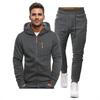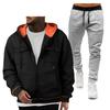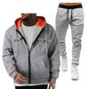 This stylish men's pullover hoodie sweatshirt is crafted from high-quality polyester, offering both comfort and durability. Featuring a classic V-neckline, this hoodie is designed for casual outings and sports events. It includes unique double pockets for added convenience and a zip-up cardigan element that enhances its versatility. The hoodie is part of a coordinated sports casual set, making it an ideal choice for an effortlessly put-together look.