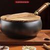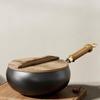 Big Belly Non-stick Pan Chinese Flat Bottom Frying Pan Without Coating Deep Iron Pot With Wooden Pot Lid 24cm Diameter Stir-Fry