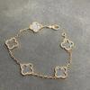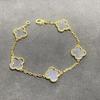 New Stylish Four-leaf Clover Five-flower Bracelet for Women Made with Natural White Mother-of-pearl Red Carnelian and Black Agate