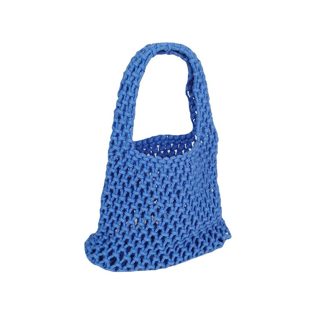 Women Woven Bucket Bag Mesh Hollow Bags with Leather Bottom Organizer Container Handbag for Summer Outdoor Picnic Shopping