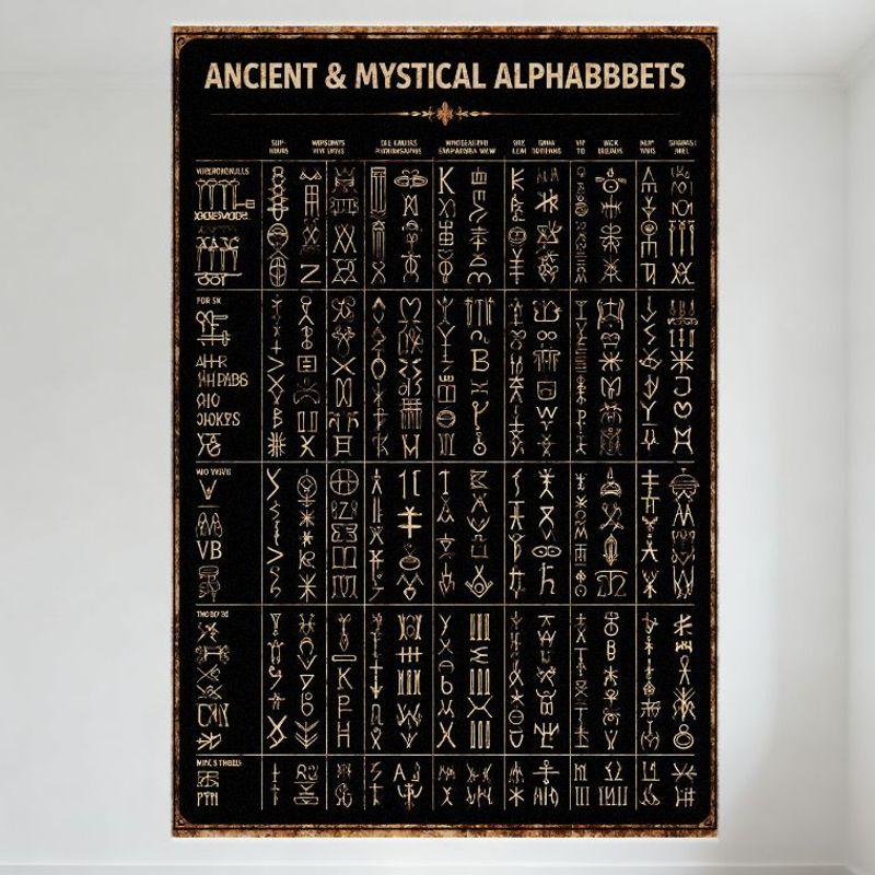 Ancient & Mystical Alphabets Metal Tin Sign Vintage Esoteric Symbols Wall Plaque for Home Decor Bar Club Cafe Wall Art