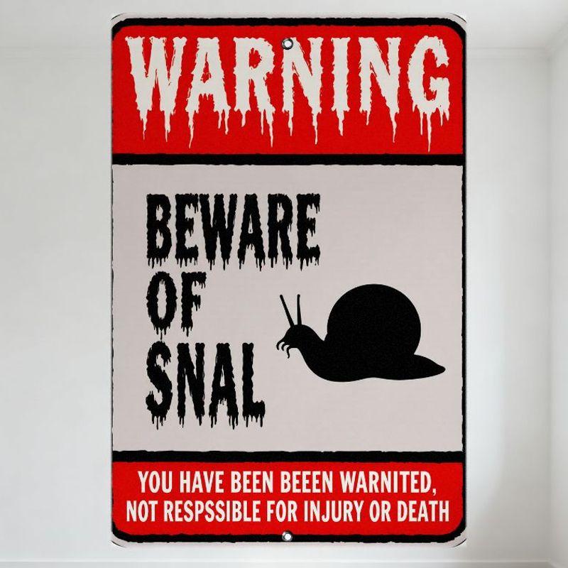 WARNING BEWARE OF SNAIL Metal Tin Sign - You Have Been Warned Rustic Wall Decor for Home Bar Club with Hanging Holes