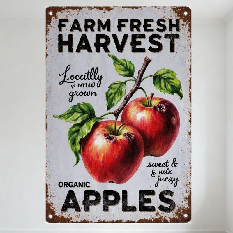 Vintage Farm Fresh Harvest Metal Tin Sign Rustic Locally Grown Sweet & Juicy Organic Apples Wall Decor for Home Bar Cafe Restaur