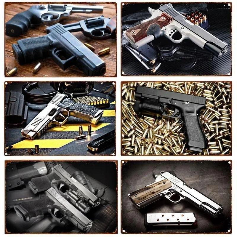 Vintage NEW Pistol HD Tin Painting Metal Sign Poster Home Living Room Bar Club Party Man Cave Art Wall Decorativ Iron Painting