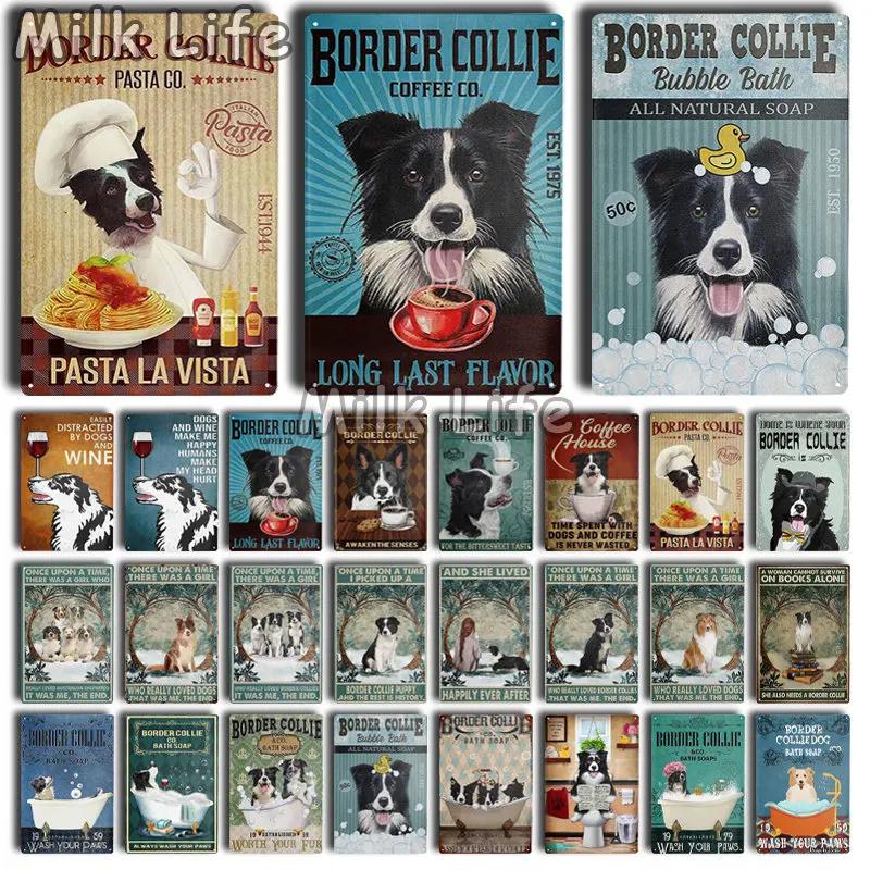 Metal Tin Sign Vintage Funny Border Collie Dog for Coffee Bathroom Toilet Pet Shop Home Sweet Home Sign Bedroom Art Wall Decor