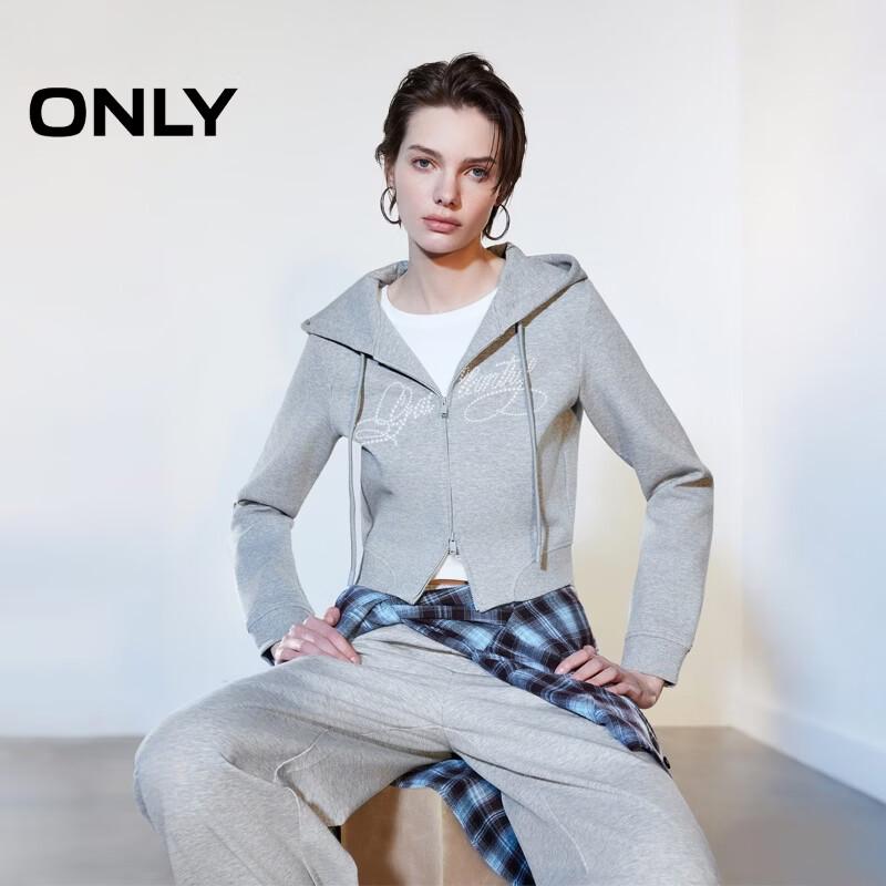 ONLY Women's Spring 2026 Cropped 3D Print Two-Way Zip Hooded Sweatshirt