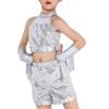 Girls Hunter Singer Role Play Outfit Halloween Cosplay Party Costumes Metallic Gloss Sleeveless Tank Top Belt Waist Chain Shorts