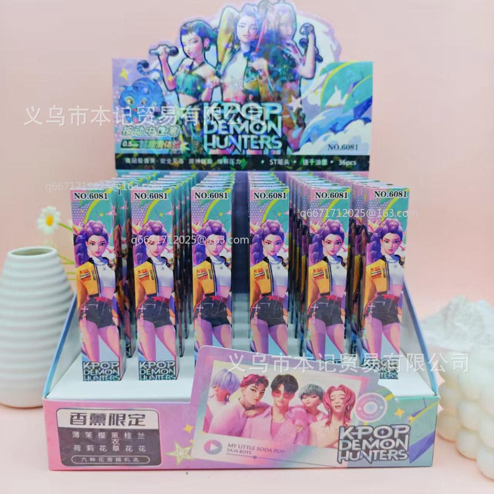 1/4/6/12PCS KPop Demon Hunters Black Ink Pen Student Writinng Draw Gel Pen Anime Figure Stationery Study Supplies Gift 0.5mm