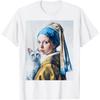 Girl With A Pearl Earring Holding Cat Funny Painting Novelty T-Shirt