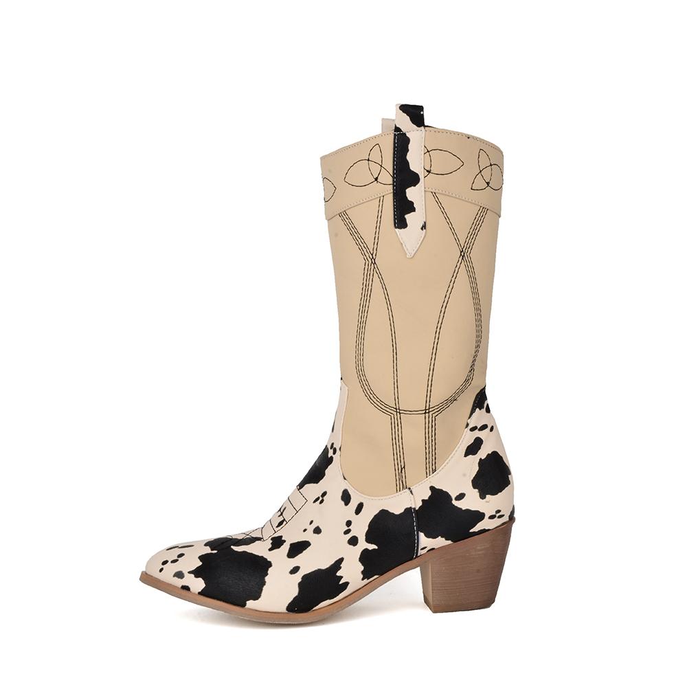 Winter Khaki Black Women Mid Calf High Boots Pointed Toe High Square Heel Small Big Size 33 47