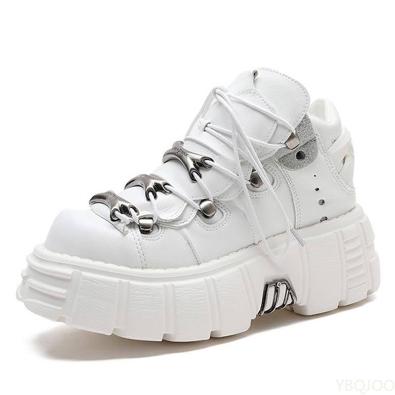 Punk Bayan yarım çizmeler Moda Rahat Yeni Rock Kadın Tıknaz Ayakkabı Metal Dekorasyon Motosiklet Botları Kadın platform ayakkabılar