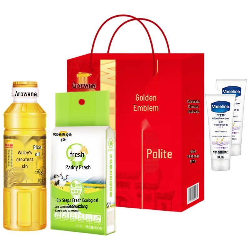 This exclusive bundle features two 100ml tubes of Vaseline Intensive Care Scented Hand Cream, renowned for its hydrating, moisturizing, and repairing properties, leaving hands soft and delicately fragrant. Also included is the Arowana 'Jinhui Youli' Type A Gift Set, a perfect accompaniment for various occasions. Both products boast a 3-year shelf life, ensuring lasting quality.