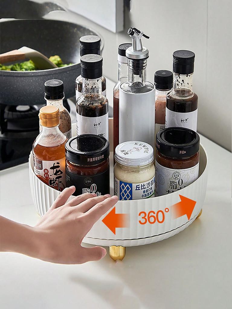 360 Degree Rotating Kitchen Storage Cabinet Organizer Multifunctional Seasoning Soy Sauce Vinegar Rack Desktop Fruit Plate Tray