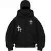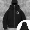 Men's Black Double Zipper Sweatshirt, Berlin Graphic Loose Street Hip-hop Hoodie Full Zipper Urban Fashion Hoodie Pullover Jacket