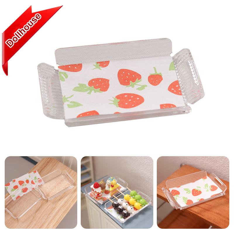 1:12 Dollhouse Miniature Transparent Stripe Tray Mini Tea Tray Fruit Pastry Dessert Storage Tray Dinner Plate Model Decor Toys