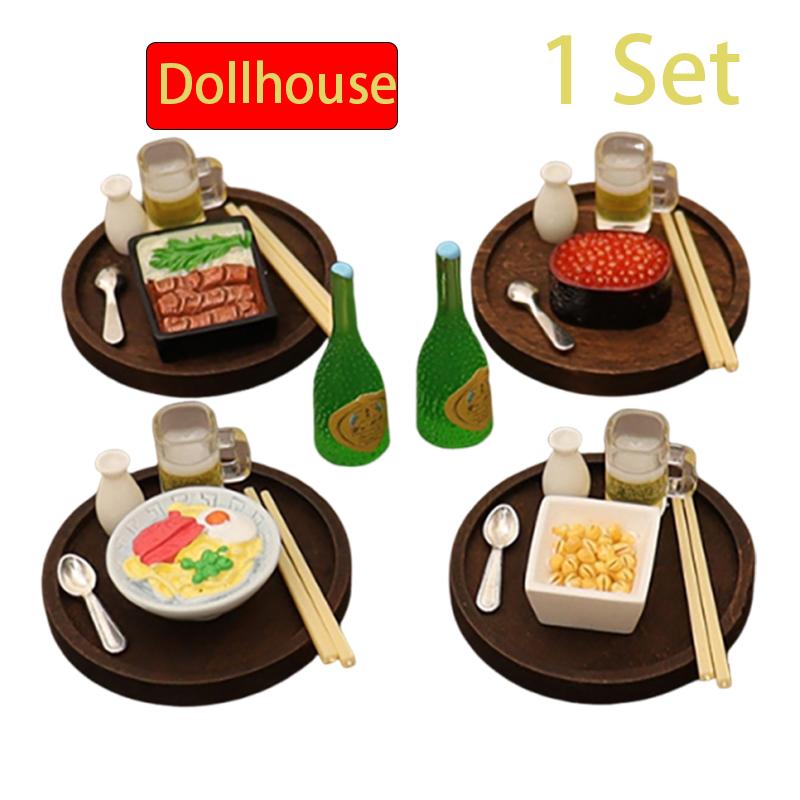 7PCS/set Doll House Accessories 1:12 Dollhouse Miniature Eel Rice Caviar Sake Lamian Noodles Kitchen Model Decor Toy