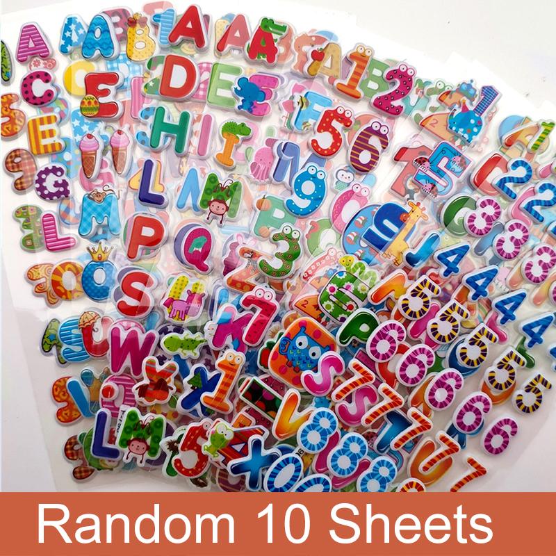 10 Sheets Letters Numbers 3D Puffy Stickers English Alphabet Birthday Festival Gift for Adult Boy Girl Scrapbook Decoration
