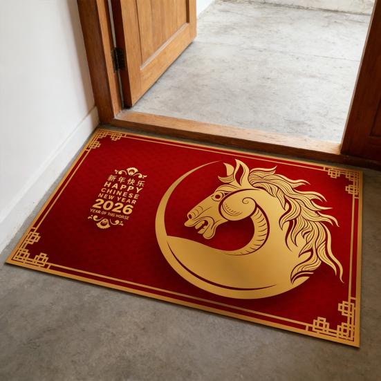Floor Mat Horse Pattern Anti-Slip Bottom Surface Wear-Resistant Floor Mat Easy to Clean Home Office Cafe Rug Home Decor