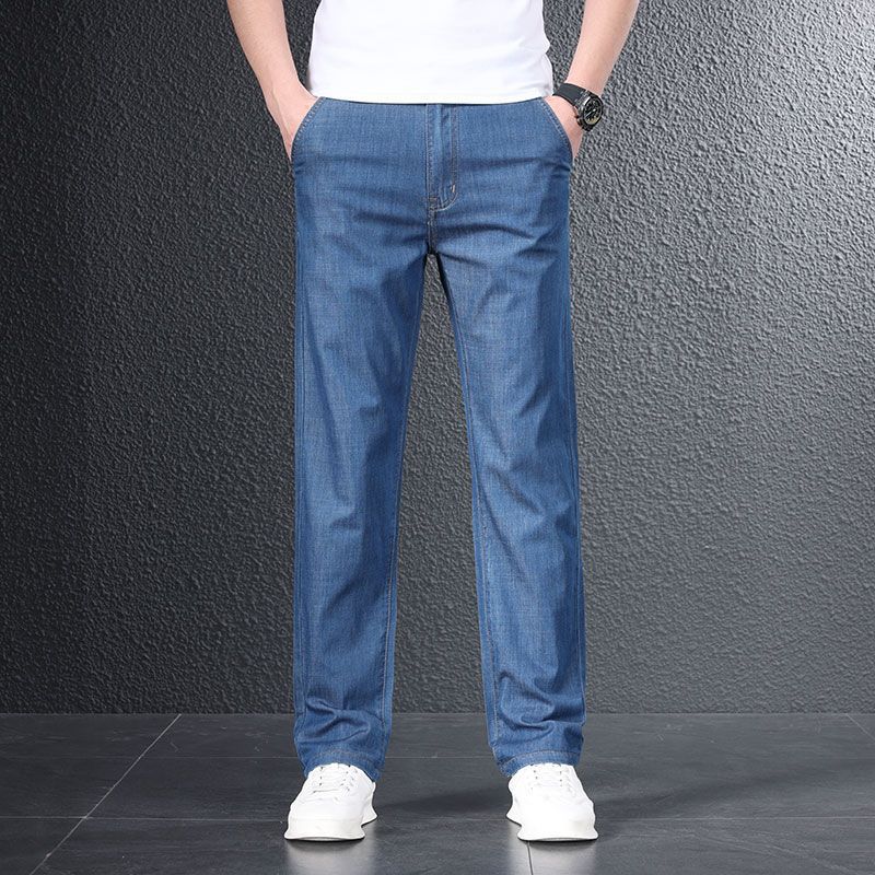 JYL Thin men's jeans, elastic trousers for business daily wide straight-through.