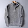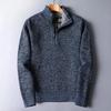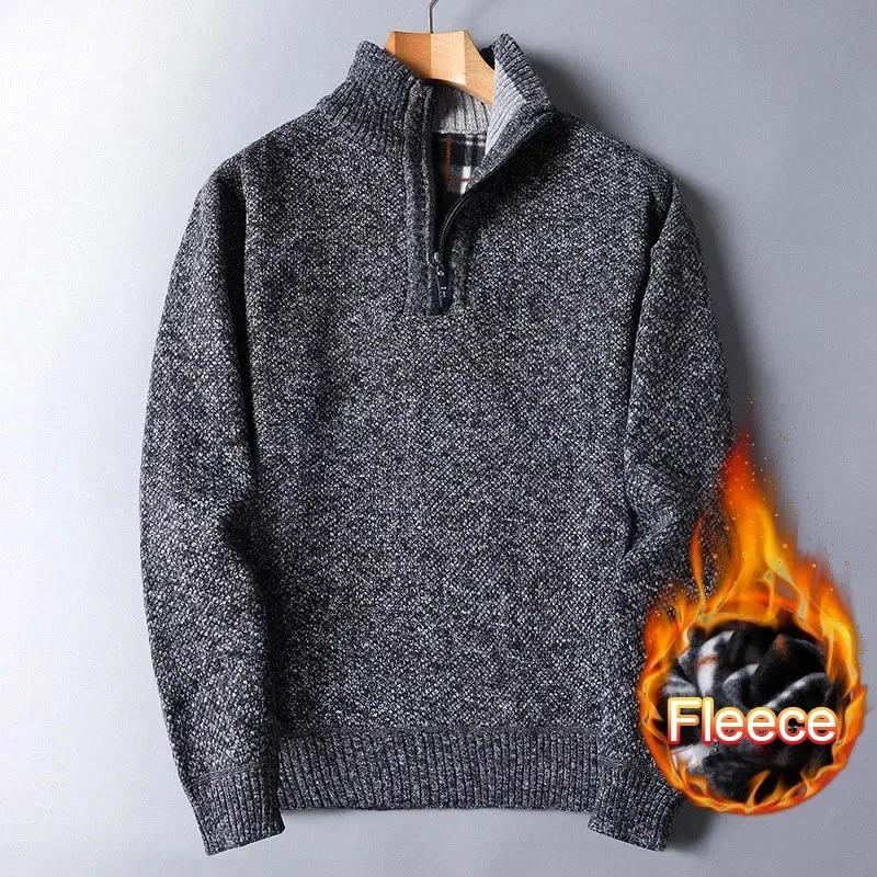Autumn Winter Fleece Lined Heathered Texture Men's Half Turtleneck Half Zip Sweater Thickened Casual Pullovers