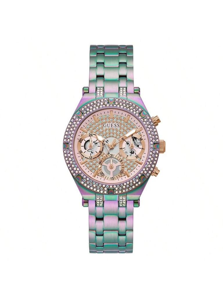 Guess Women's Crystals Iridescent Stainless Steel Fashion Chronograph Watch for Suitable for Daily Party Wear Holiday Party Gift GW0440L3