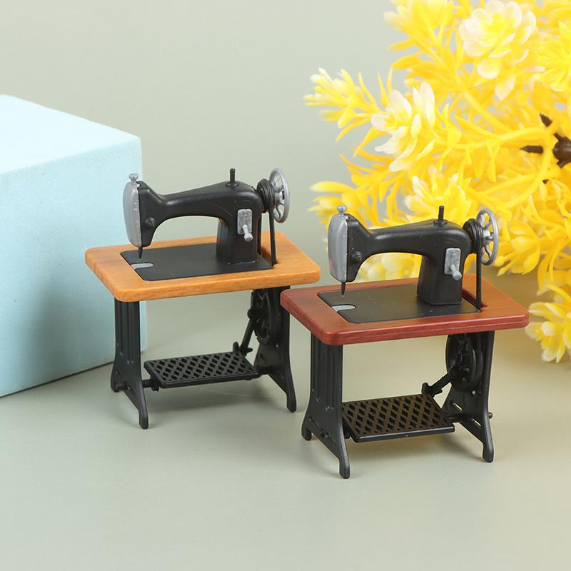 Bebek Evi Dekoru Minyatür Mobilya Ahşap Dikiş Makinesi İplik Makas Aksesuarları Bebek Evi İçin Kız Çocuk Oyuncakları