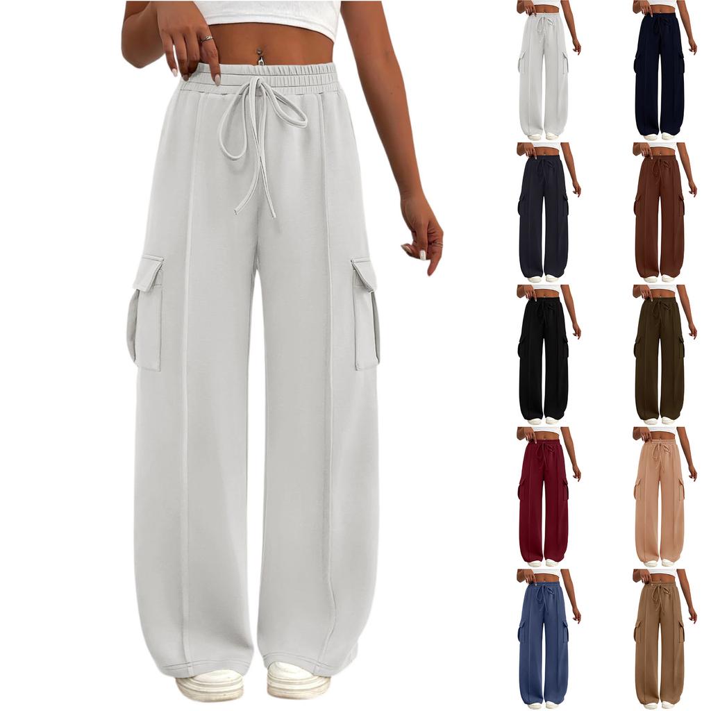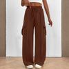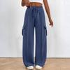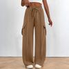 Women's Overalls Casual Lightweight Solid Color Trousers Drawstring Multi-Pockets Straight Leg Pants