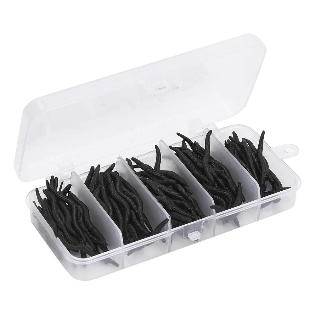 150 pcs 4cm Silicone Black Artificial Worm Earthworm Soft Fishing Lures Bait Fish Tackle Accessories Kit