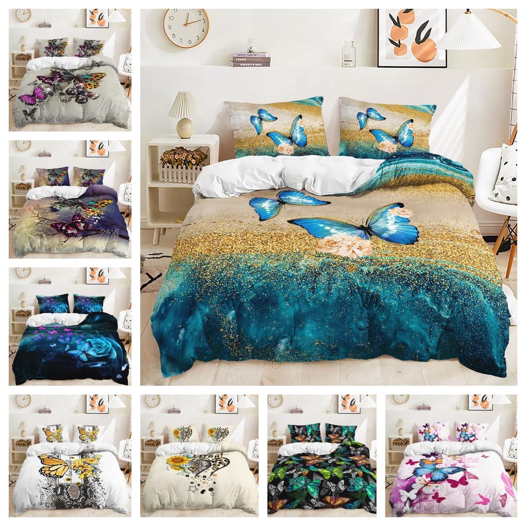 Kelebek Serisi Yorgan Kılıfı Üç Parça Dijital Baskı Yastık Kılıfı Yatak Takımı Yatak Odası Dekorasyonu
