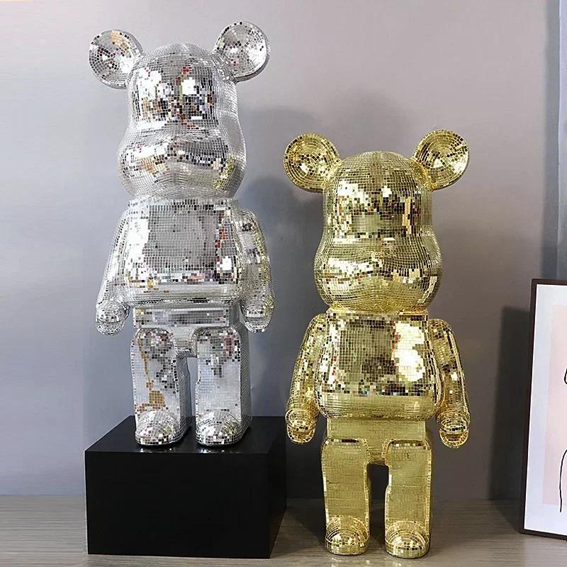 50cm Large Bear Figurine Aesthetic Disco Mirror Violent Bear Statue Reflective Sculpture Figurine Luxuryroom Decoration Ornament