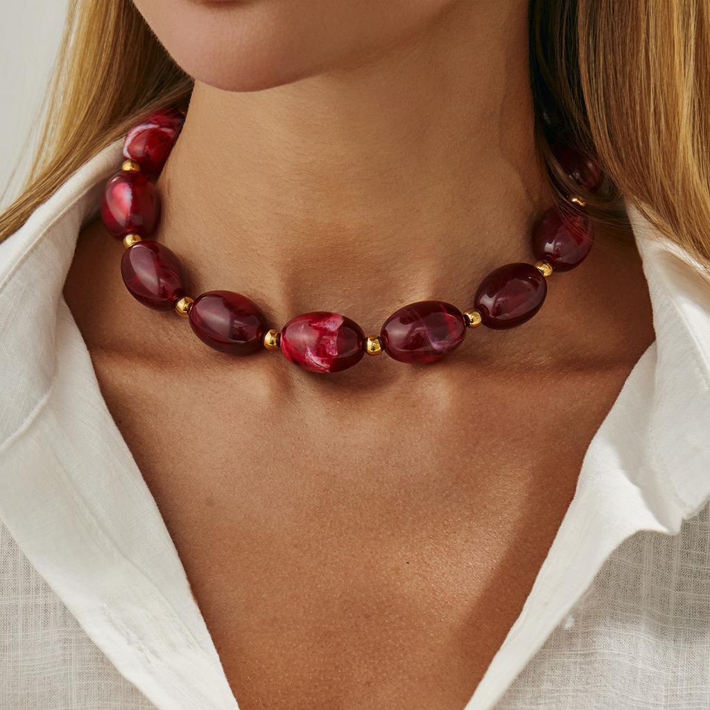 Vintage Resin Beads Choker Necklace for Women Jewelry Party Gift