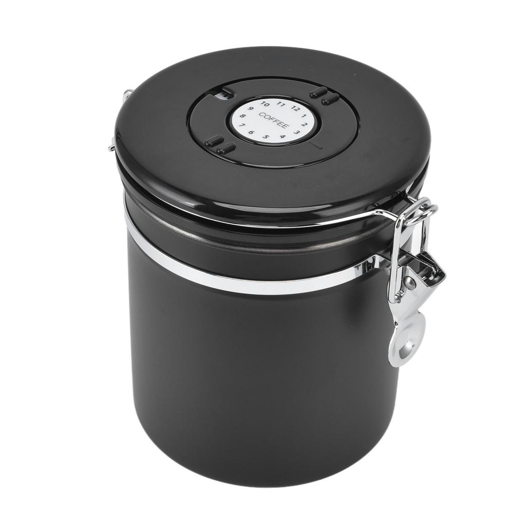 Airtight Coffee Canister Storage Jar Date Tracker CO2 Release Valve Stainless Steel Container Black