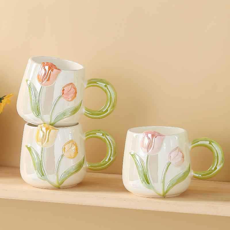 Color: Pearlescent glaze pink, pearlescent glaze blue, pearlescent glaze orange, pearlescent glaze yellow, tulip pink, tulip blue, tulip orange, tulip yellow, gift box set [Note style]