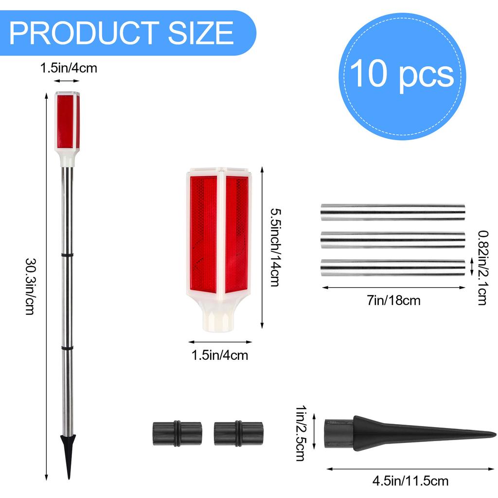 RETRACTABLE DESIGN:our driveway markers reflectors can be easily assembled to adjust the height and feature three detachable poles, each pole is about 18 cm/ 7 inches, and the minimum can be shortened to 13.19 inches, the maximum length is 30.31 inches,such a simple assembled design is convenient to use and store without taking up too much space