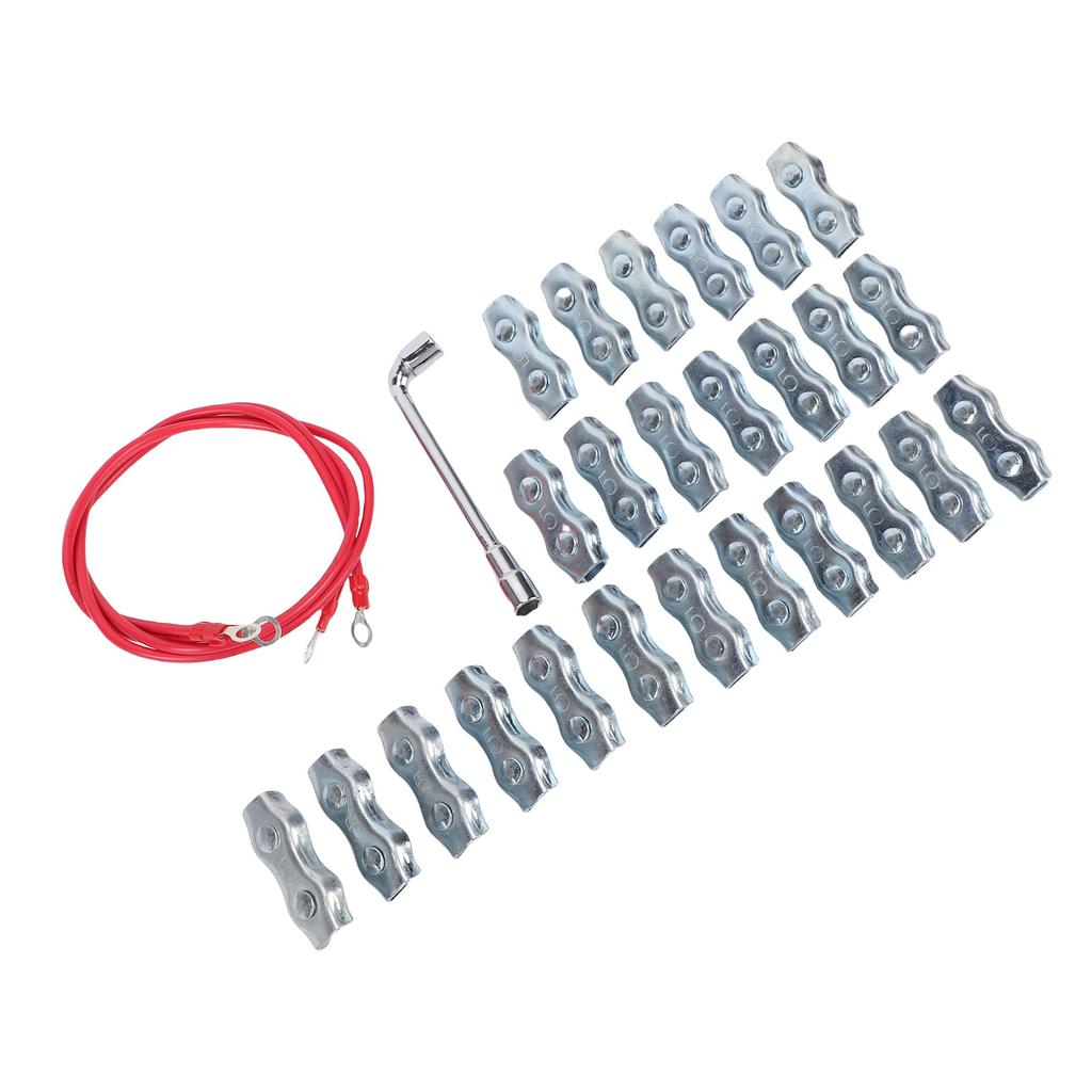 2. [Convenient Connection] Equipped with 2 silicone copper wires with loop terminals at both ends, serving for the conduction between the electric fence PE rope and the PE rope connectors, as well as at gate entrances. Use the provided socket tool to tighten them, saving labor and improving operational efficiency