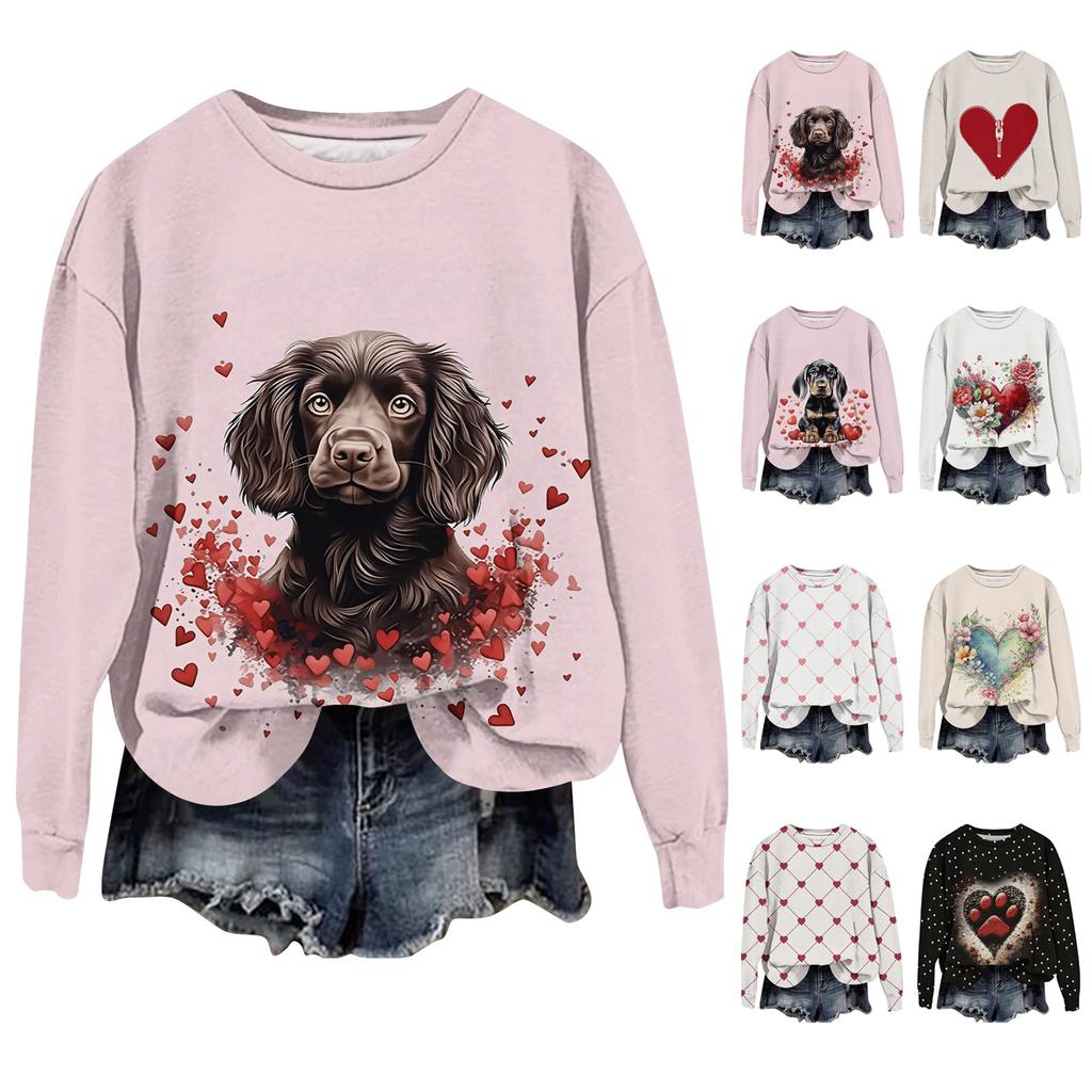 Kadın Moda Baskılı Uzun Kollu Bol Yuvarlak Yaka Sweatshirt Üst Sonbahar