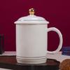 Cha Xun Gold-Detailed White Porcelain Office Mug with Lid