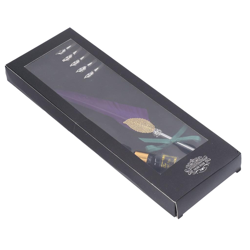 Quill Pen Set Exquisite Feather Design Retro Hollow Style Calligraphy Pen with Empty Ink Bottle Metal Nib SP101014