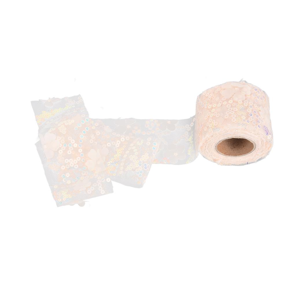 Tulle Roll 10 Yards Embroidered Sequins Flowers Mesh Ribbon Decorative Craft AccessoriesBeige